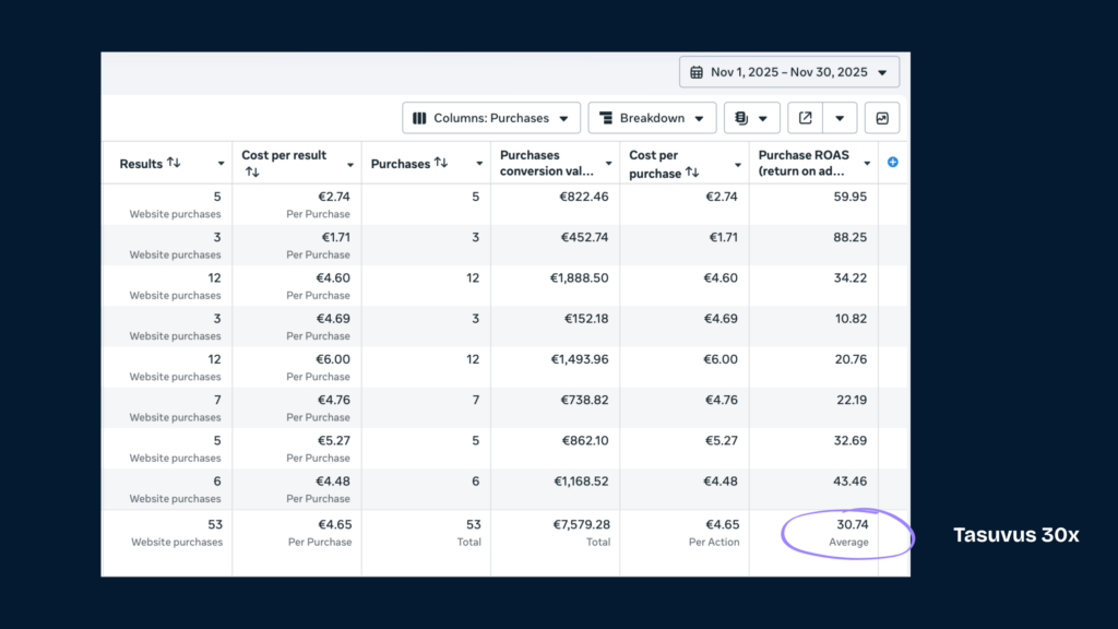 ROAS 30x ehk iga investeeritud euro tõi tagasi 30.