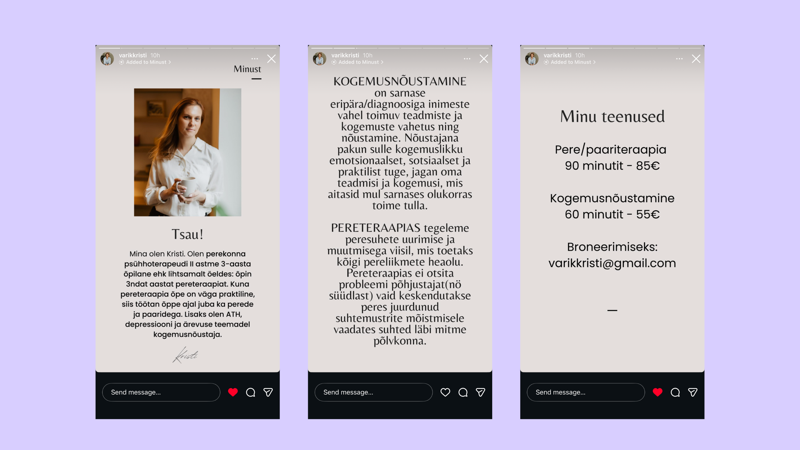Parem: „Terapeut postitas Instagrami 5x nädalas, aga sai keskmiselt ainult 1 päringu. Nüüd postitab ta 2x nädalas ja saab 5 päringut nädalas. Selles postituses selgitan, mida me muutsime.“